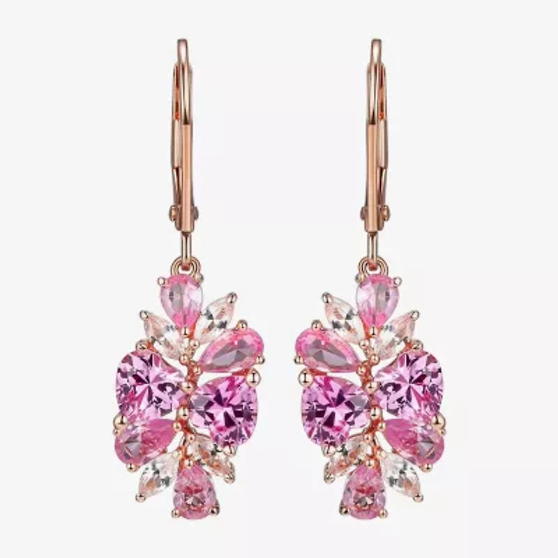 Womens Lab Created Pink 14K Rose Gold Over Silver Drop Earrings