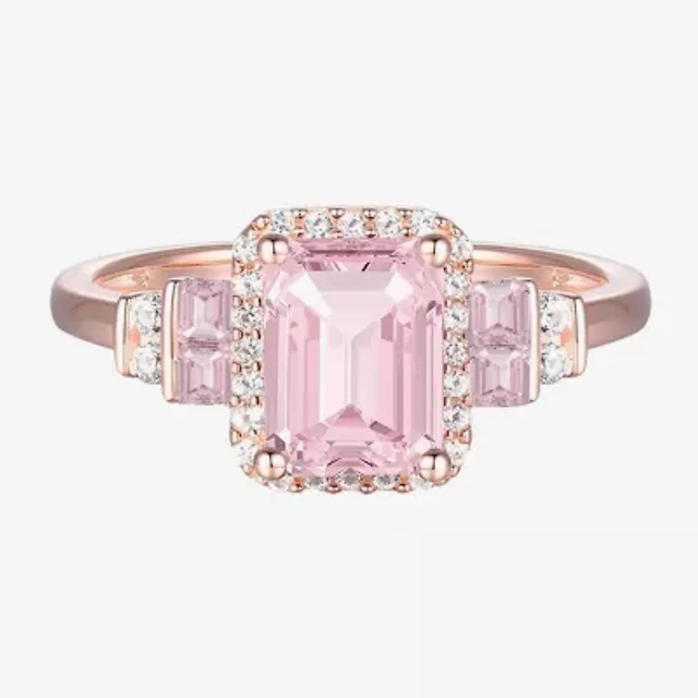 Womens Lab Created Pink Sapphire 14K Rose Gold Over Silver Halo Cocktail Ring