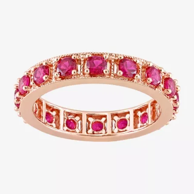 Womens Lab Created Red Ruby 18K Rose Gold Over Silver Stackable Ring