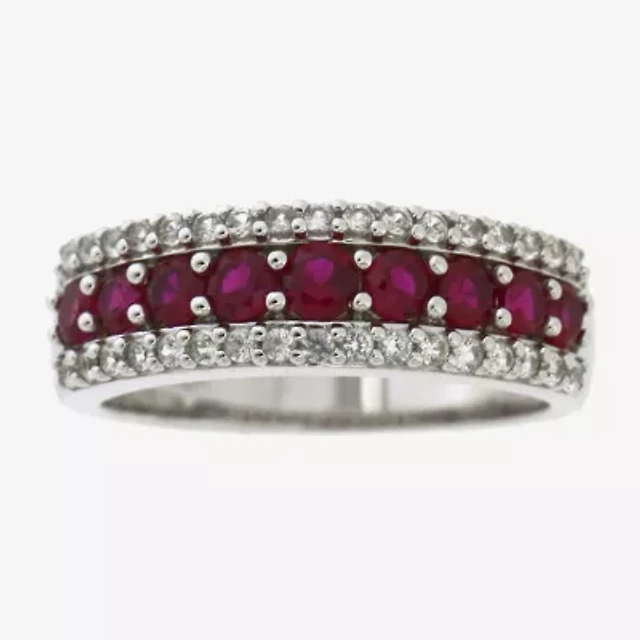 Womens Lab Created Red Ruby Sterling Silver Side Stone Cocktail Ring