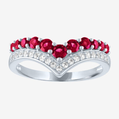Womens Lab-Created Red Ruby and Diamond Accent Ring Sterling Silver