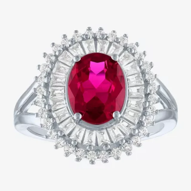Womens Lab Created Ruby Sterling Silver Cocktail Ring