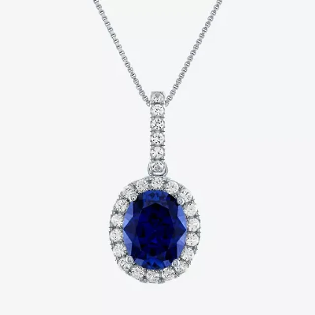 Womens Lab Created Sapphire Sterling Silver Inch Pendant Necklace