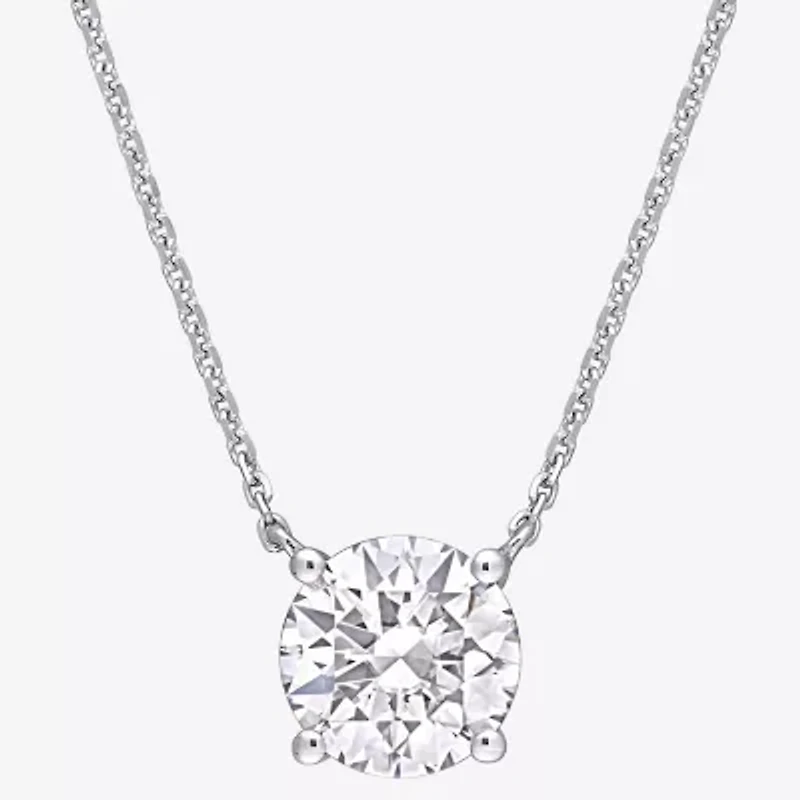 Womens Lab Created White Moissanite 14K White Gold Round Inch Pendant Necklace
