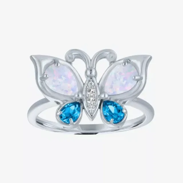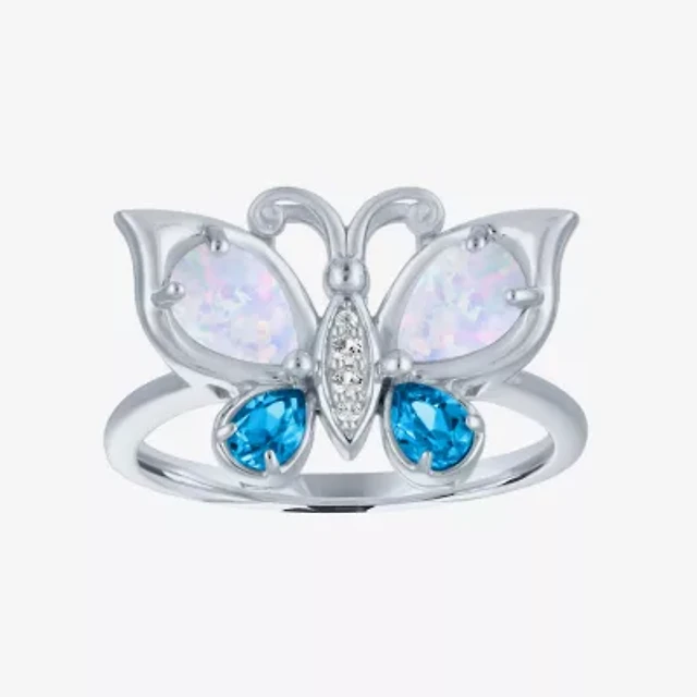 Womens Lab Created White Opal Sterling Silver Butterfly Cocktail Ring