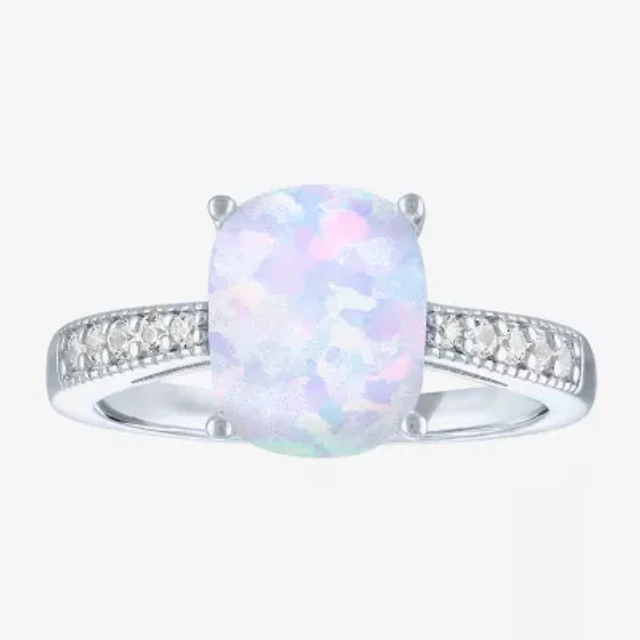 Womens Lab Created White Opal Sterling Silver Cocktail Ring