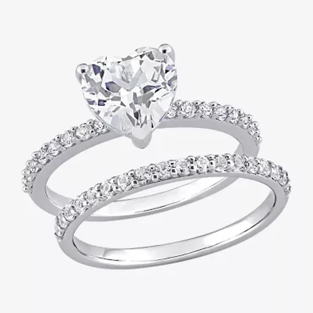 Womens Lab Created White Sapphire 10K Gold Heart Side Stone Bridal Set