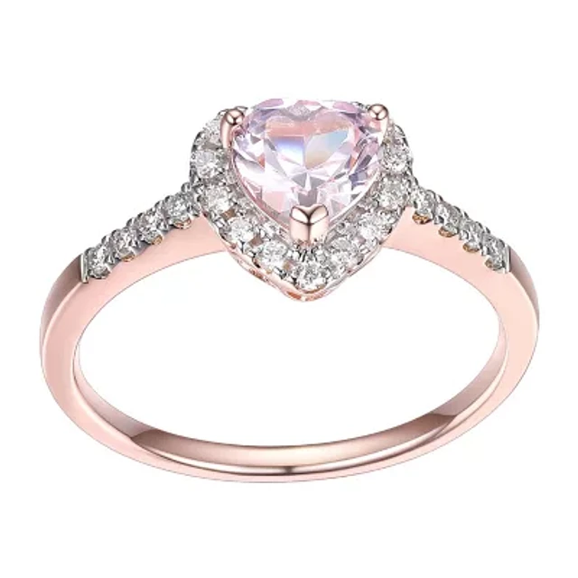 Womens Lab Grown Pink Sapphire & 1/5 CT. T.W. Lab Grown White Diamond 18K Rose Gold Over Silver Heart Halo Cocktail Ring