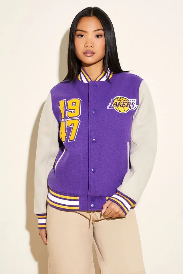 Women's Los Angeles Lakers Letterman Jacket in Purple/Cream Small