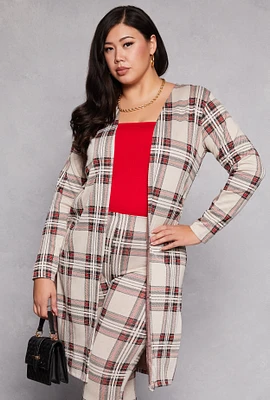 Womens Plus Size Plaid Side Slit Duster, Multi, Size 2X