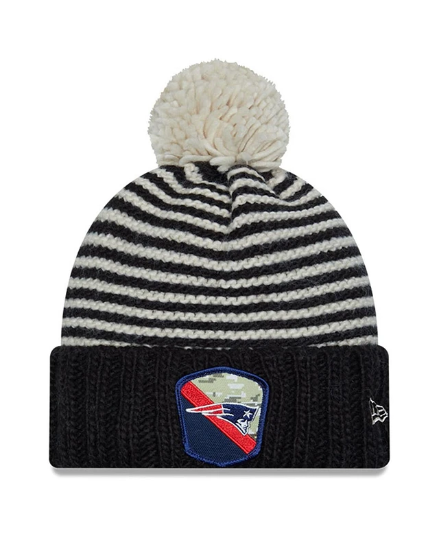 Women's New Era Black New England Patriots 2023 Salute To Service Cuffed Pom Knit Hat