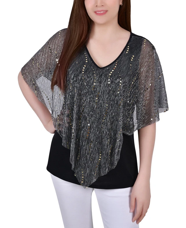 Ny Collection Women's Chiffon Poncho Top with Ring