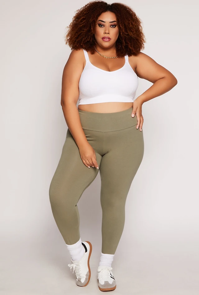 Womens Plus Size Basic Waistband High Waist Leggings, Green, Size 1X