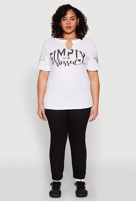 Womens Plus Size Sequin Simply Blessed Graphic Tee, White, Size 1X