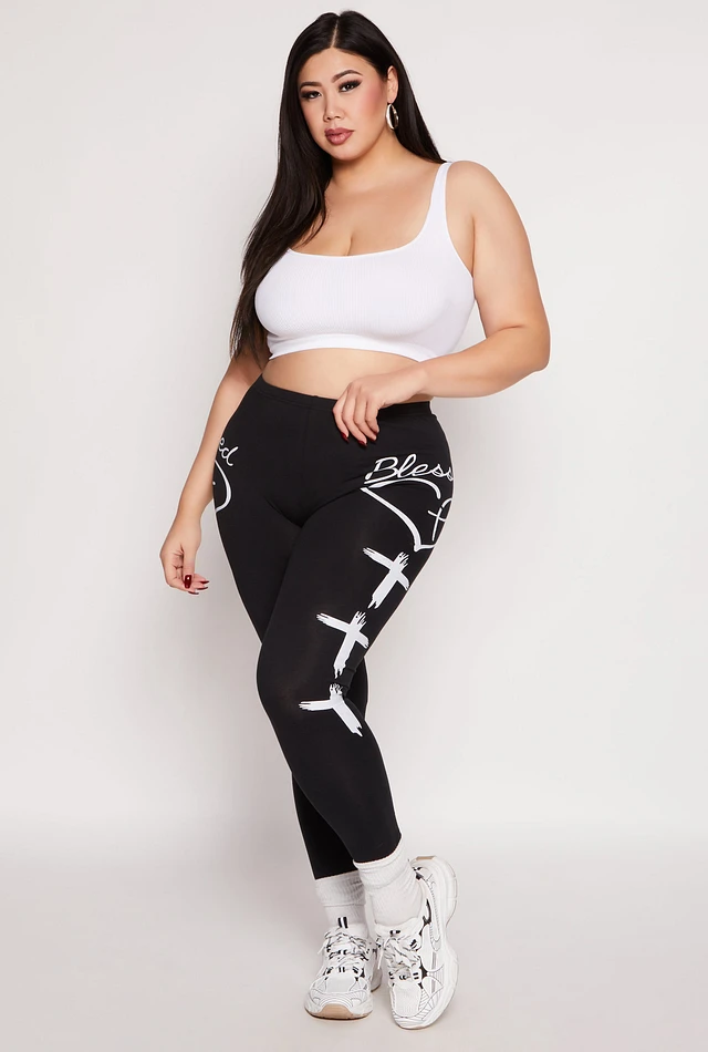 Womens Plus Size Blessed Cross Print Leggings, Black, Size 1X