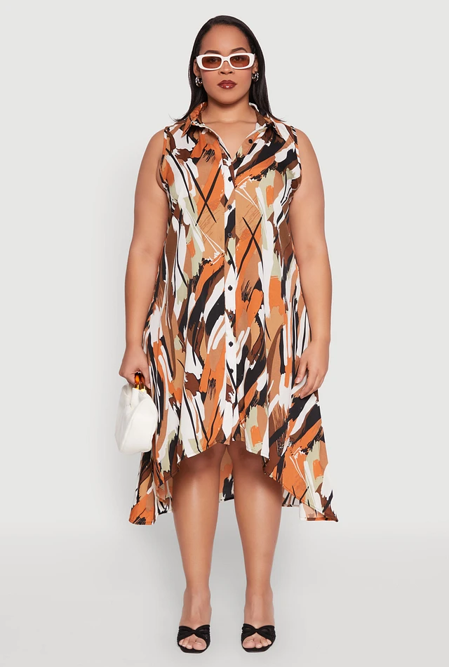 Plus Brush Stroke Print Sleeveless Midi Dress