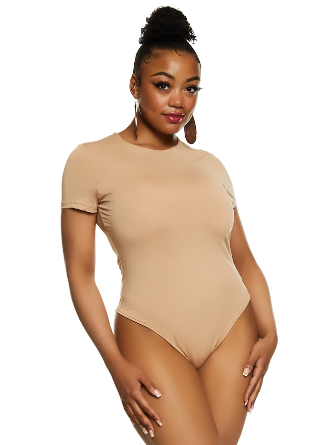 Womens Plus Size Daisy Double Layer Crew Neck Bodysuit, Beige, Size 3X
