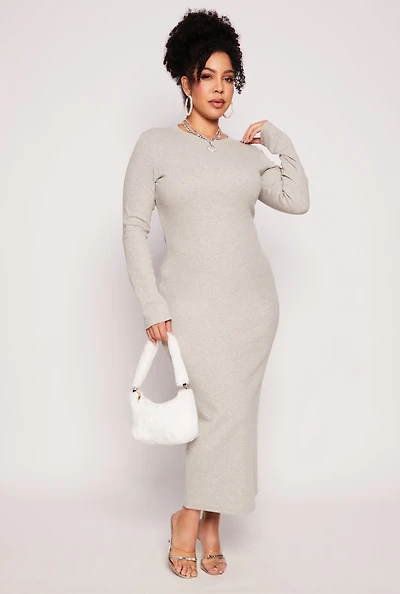 Womens Plus Size Daisy Long Sleeve Maxi Dress, Grey, Size 1X