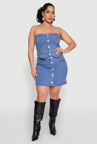 Womens Plus Size Denim Zip Front Bustier Top, Blue, Size 1X