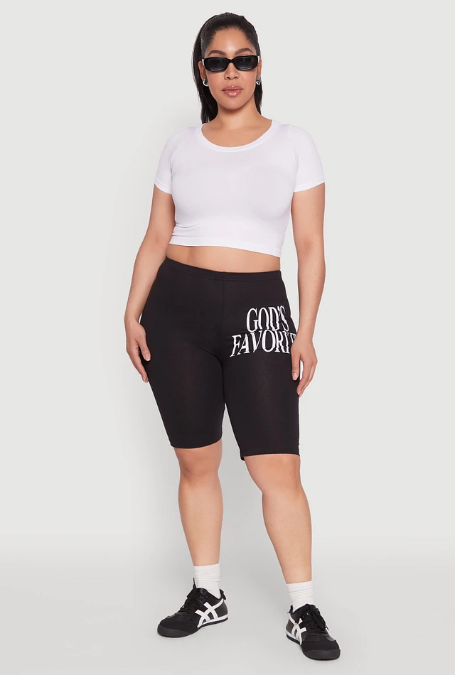 Womens Plus Size Gods Favorite Graphic Biker Shorts, Black, Size 2X