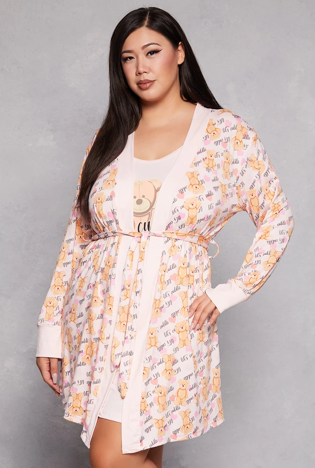 Womens Plus Size Lets Cuddle Graphic Cami Nightgown with Robe, Pink, Size 3X