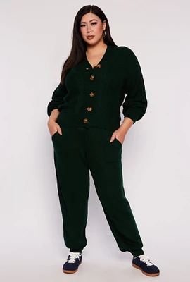 Womens Plus Size Knit High Waist Joggers, Green, Size 3X