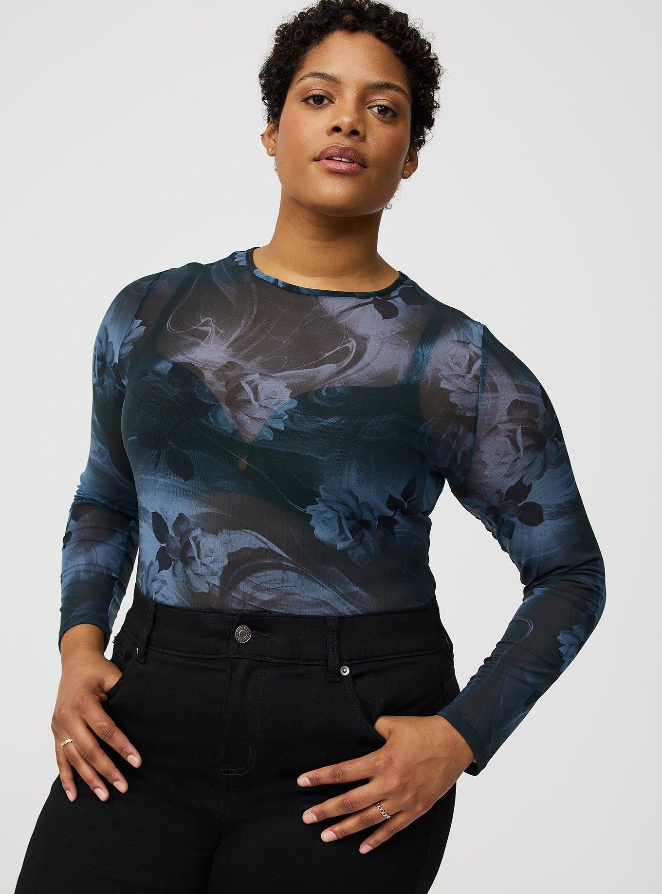 Plus Mesh Long Sleeve Top