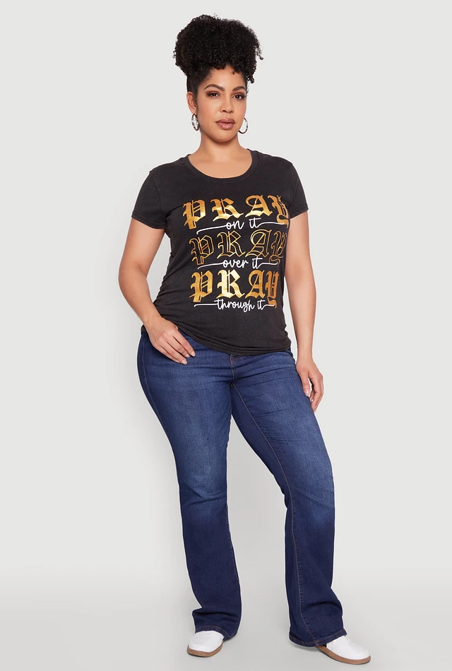 Womens Plus Size Mineral Wash Pray Graphic Tee, Grey, Size 2X