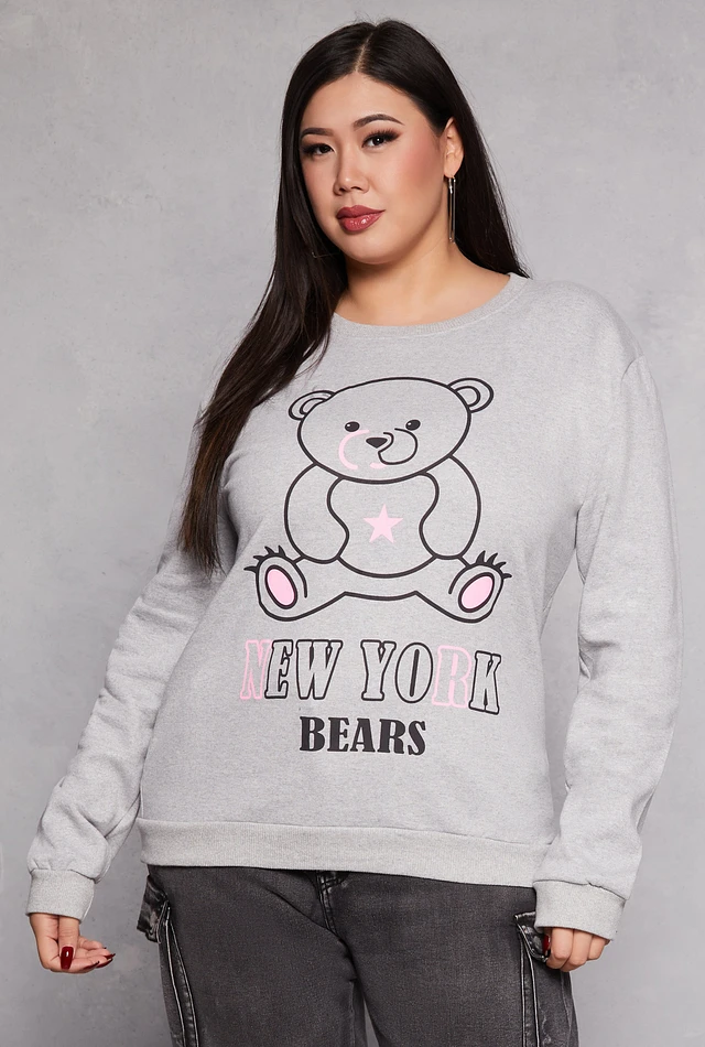Womens Plus Size New York Bears Sweatshirt, Grey, Size 2X