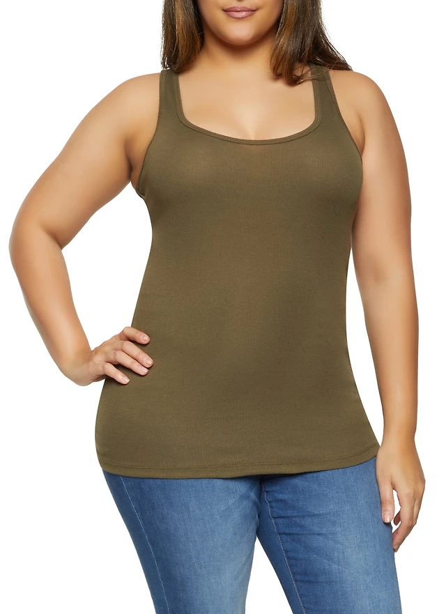 Womens Plus Size Ribbed Knit Tank Top, Green, Size 1X