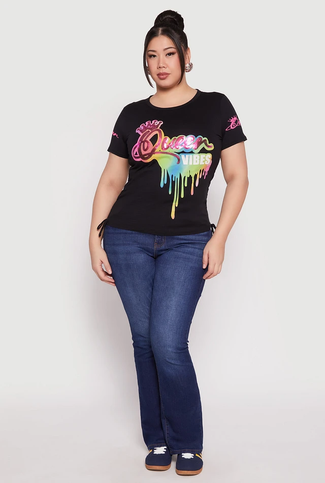 Womens Plus Size Sequin Queen Vibes Graphic Tee, Black, Size 1X