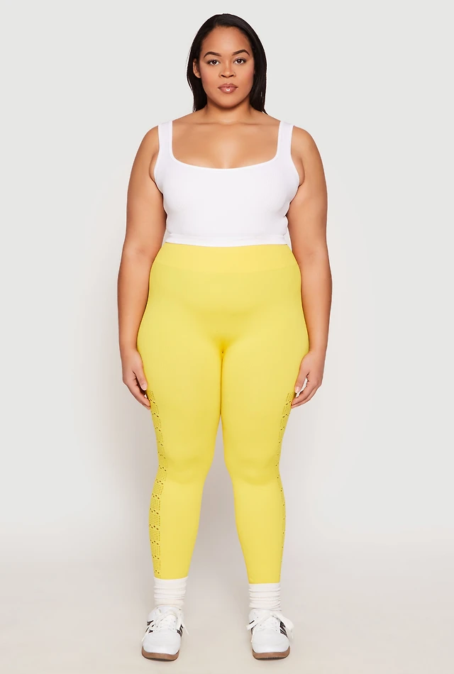 Womens Plus Size Side Laser Cut Seamless Leggings, Yellow, Size 2X-3X