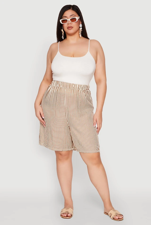 Plus Striped Seersucker Bermuda Shorts