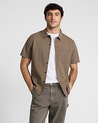 Striped Seersucker Cotton Stretch Short Sleeve Shirt