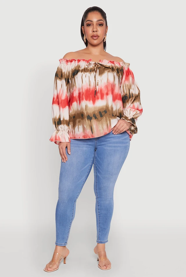 Womens Plus Size Tie Dye Off the Shoulder Blouse, Multi, Size 1X