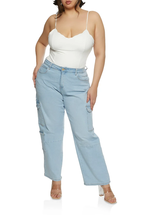 Plus VIP High Waisted Wide Leg Cargo Jeans