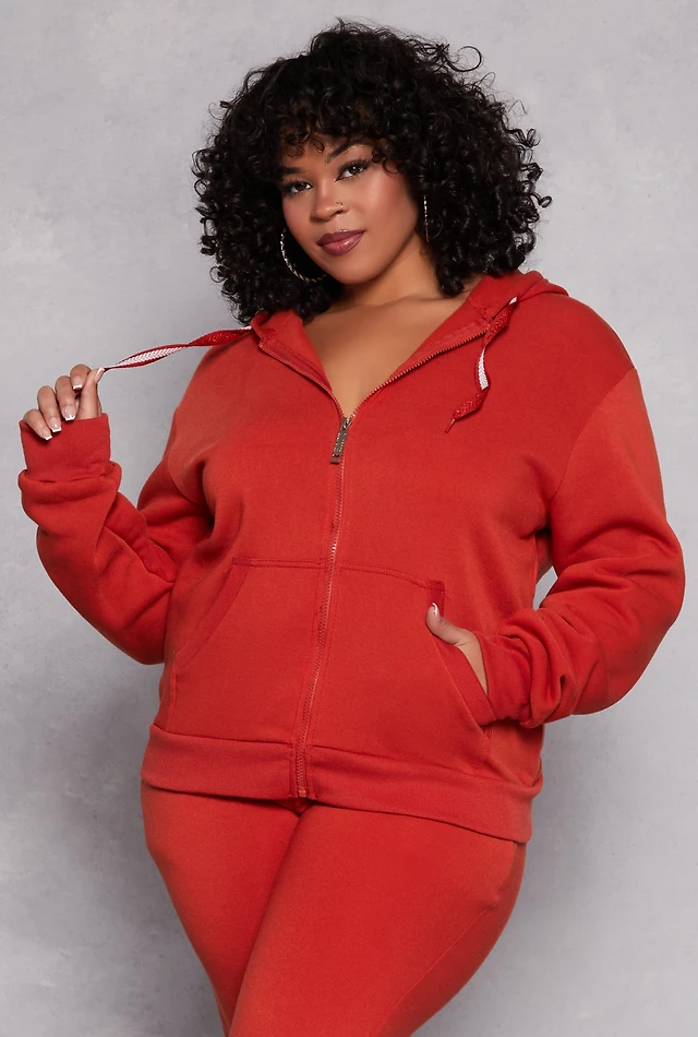 Plus Plush Zip Front Hooded Sweatshirt