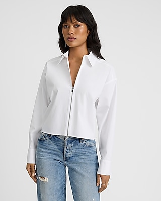 Stretch Cotton Poplin Zip Front Cropped Shirt