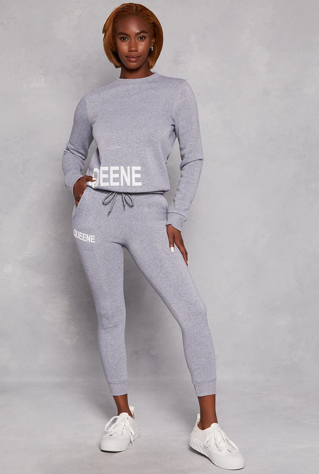 Womens Queene Graphic Fleece Drawstring Joggers, L