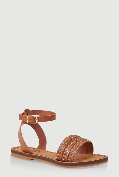 Womens Girls Triple Rhinestone Band Sandals, Brown, Size 1