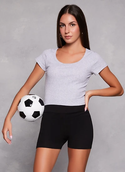 Faux Pearl Scoop Neck Rib-Knit Tee