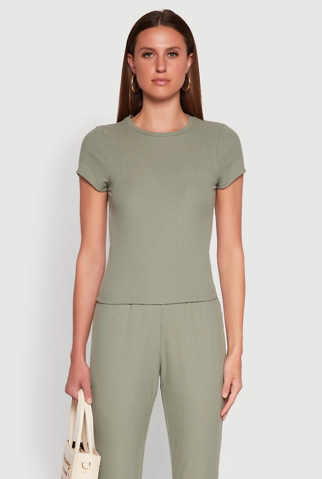 Ribbed Knit Short Sleeve Tee