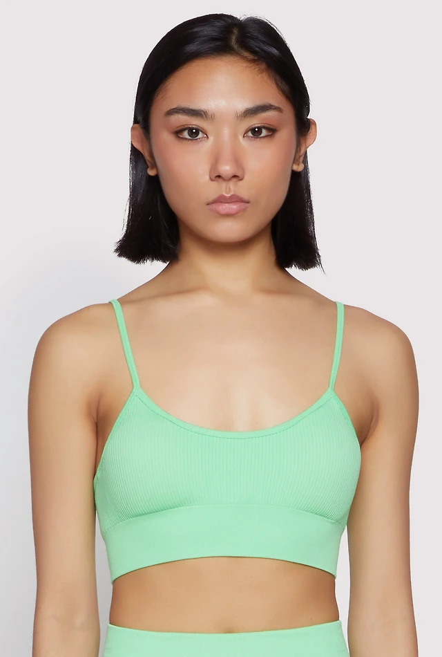 Womens Seamless Cami Sports Bra, Green, Size L