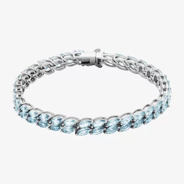 Womens Simulated Blue Aquamarine Sterling Silver Tennis Bracelet