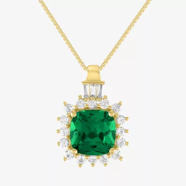 Yes, Please! Womens Lab Created Green Emerald 14K Gold Over Silver 18 Inch Pendant Necklace