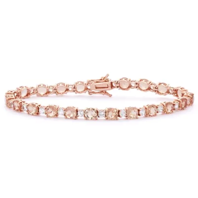 Womens Simulated Pink Morganite 14K Rose Gold Over Silver 7.25 Inch Tennis Bracelet