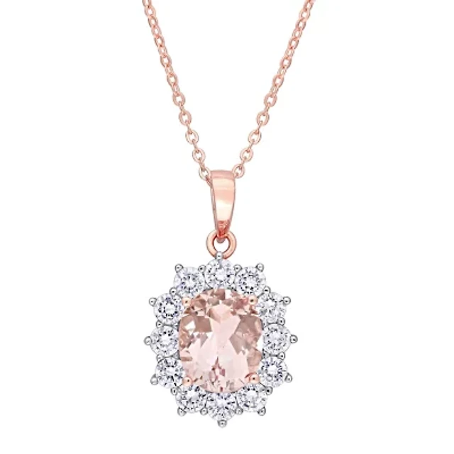 Womens Genuine Pink Morganite 10K Rose Gold 18 Inch Pendant Necklace
