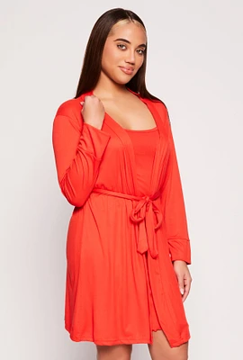 Womens Ribbed Cami Nightgown with Robe, Red, Size S