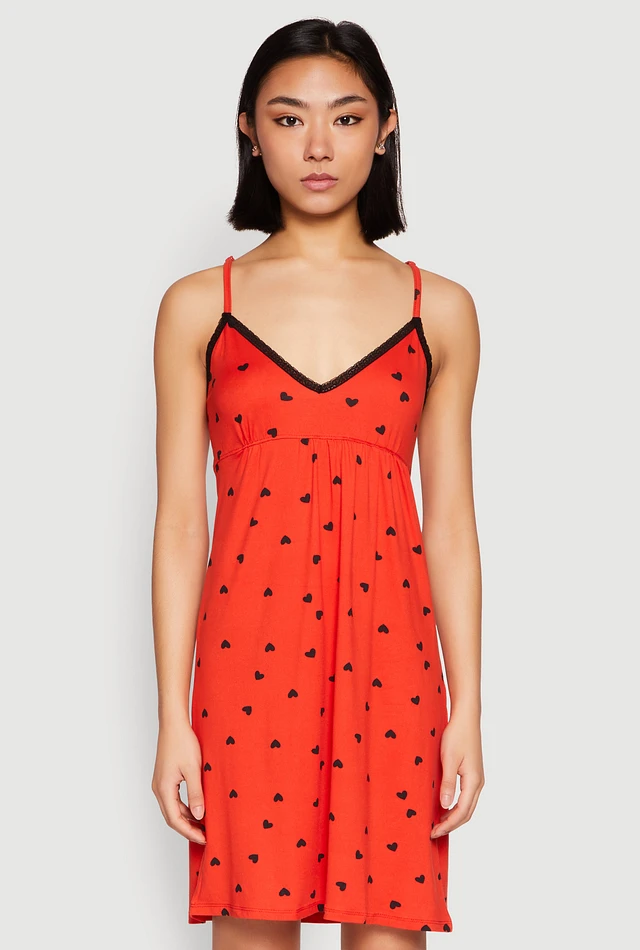 Womens Soft Knit Heart Print Cami Nightgown, Red, Size L