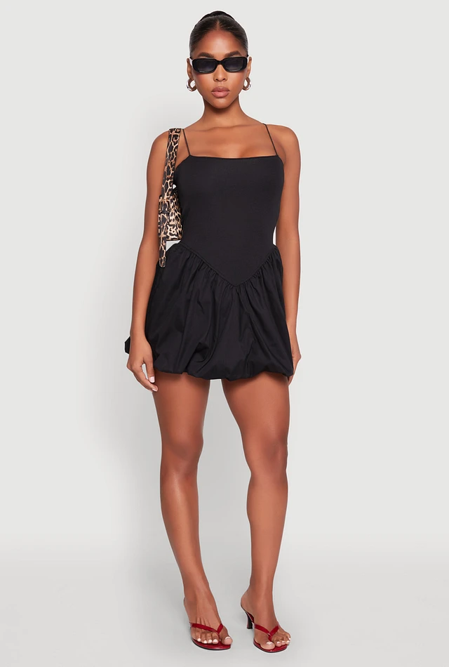 Womens Square Neck Bubble Dress, Black, Size M